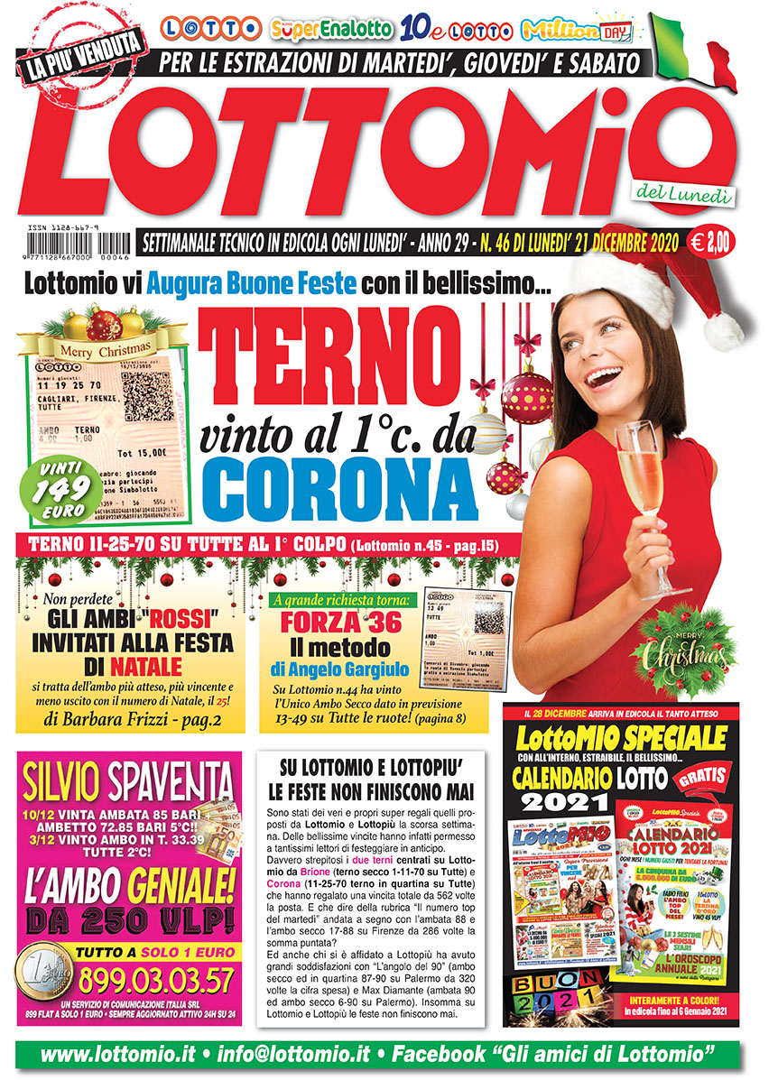 Eccolo ora! Lottomio del Lunedì n. 46 disponibile in anteprima a prezzo ridotto! TERNO SECCO DI CORONA AL 1°C!!!! Da lunedì in tutte le edicole!