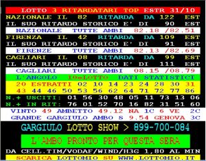 La settimana appena trascorsa è stata davvero ricca di soddisfazioni per chi ha deciso di seguire i consigli pubblicati sulle nostre riviste. Cominciamo con il nostro mensile Lottopiù e con i “Ritardatari boom” che hanno centrato l’ambo secco 5-67 sulla ruota di Palermo e su Tutte, per un premio di ben 275 volte la somma giocata. Bellissima vincita anche con la rubrica di Fabio Felici “Gli ambi amici per darsi un “5” vincente a maggio” che ha centrato il terno 4-5-23 su Tutte, regalando un premio di 112,5 volte la somma giocata. A segno anche i “Terni secchi mensili boom”, con l’ambo 4-45 su Milano e Tutte, per un premio di 91 volte la posta. Da segnalare anche Delear che con la sua previsione, ha centrato l’ambata 5 su Palermo, gli ambi secchi 5-14 e due volte 5-23 su Tutte e l’ambo in terzina 14-23 sempre su Tutte, per un premio complessivo di 94 volte la posta. A segno anche le “Ambate secche” (60 su Roma), “L’Analisi del mese” (ambi secchi 30-71 e 80-37 su Tutte), Durante (17 su Torino), Gargiulo (71 su Bari), “Il calendario di maggio” (1-5 e 52-87 su Tutte), “L’ambo nascosto” (12-13 su Tutte), le “Terzine astrologiche” (2-39 su Tutte), le “Terzine zodiacali di Max” (45-68 su Tutte), Volpicelli (ambo secco ed in terzina 20-54 su Tutte), Zannella (19-79-51 su Tutte). Belle vincite anche su Lottomio. A segno l’ “Ambata secca” (12 su Roma), Bramante (1-21 su Tutte), Brione (78 su Napoli), Tony Magico (57 su Venezia), Del Vecchio (49 su Palermo e ambetto 37.49 su Palermo e tutte)), Felici (45 su Milano), Giulian (1-21 su Tutte), “L’angolo del 90” (16-90 su Tutte), La Pera (ambetto 1-67 su Tutte), Lotto Mister X (ambo secco 71-89 su Tutte), “Oroscopo di Alice” (17-53 e 39-53 su Tutte), Prisco (71 su Firenze), Pusceddu (44-77 su Tutte), rubrica pagina 9 del lunedì (32 su Venezia e 32-39 su Tutte). Grande successo anche del nuovo Lotto 2.0. Ecco la carrellata di vincite realizzate: Masi ambo secco 20-73 al 2° colpo su Tutte, Masi ambetto secco su Napoli 20-12 al 4° colpo, Tania Nista ambata 70 e ambo secco 70-71 a colpo su Bari, Lazzarin ambata 77 a colpo su Cagliari, Will ambata 54 al 4° colpo su Napoli, Imbastari ambata 55 su Genova al 4° colpo, Masi ambo in terzina 19-45 a colpo su Milano (“I vertibili fanno tendenza”), Will ambo secco 6-26 al sesto colpo su Firenze, Baldazzi ambata determinata 89 in quarta posizione al terzo colpo su Bari, previsione, Baldazzi ambo in quartina su Tutte 90-40 al terzo colpo, Morena Silenu ambo 2-72 in terzina su Milano al secondo colpo, Lella e Maria ambo secco 28-57 e ambata 28 al quinto colpo su Roma, Imbastari ambata 55 al secondo colpo su Firenze, Will ambata 6 al quinto colpo su Firenze, Maniccia ambata 56 al quinto colpo su Torino.