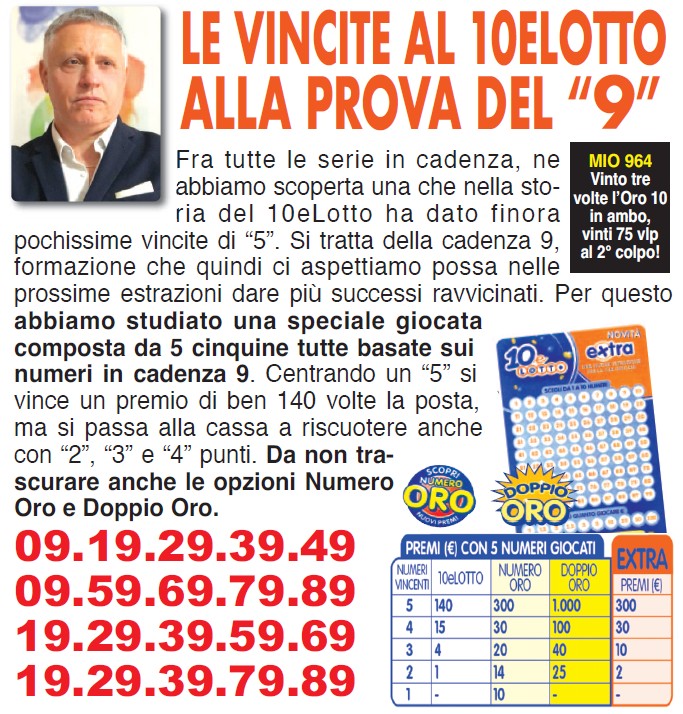 Vincere al 10elotto è sempre una bella cosa…Felici ha trovato nella cadenza 9 la via per tentare la vincita con la statistica. Volete provarci ? Ecco l’articolo da Lottomio.