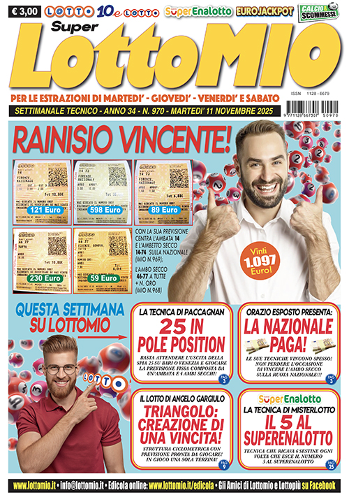 Se lo vuoi subito al Lunedì basta scaricarlo su “www.lottomio.it/edicola” 32 pagine a colori comprese 4 pagine di scommesse sportive sul calcio. Acquistalo in edicola.