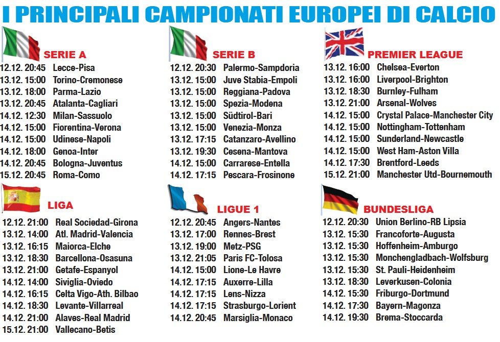 Questa settimana potete scommettere con i campionati europei e le classifiche aggiornate.