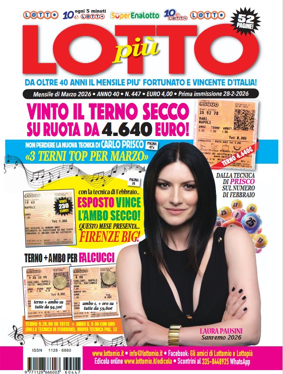 LOTTOPIU' DI MARZO 2026 IN EDICOLA DAL 27 FEBBRAIO - 1 SOLO ACQUISTO MENSILE E TI TIENE ANCHE TANTA COMPAGNIA...