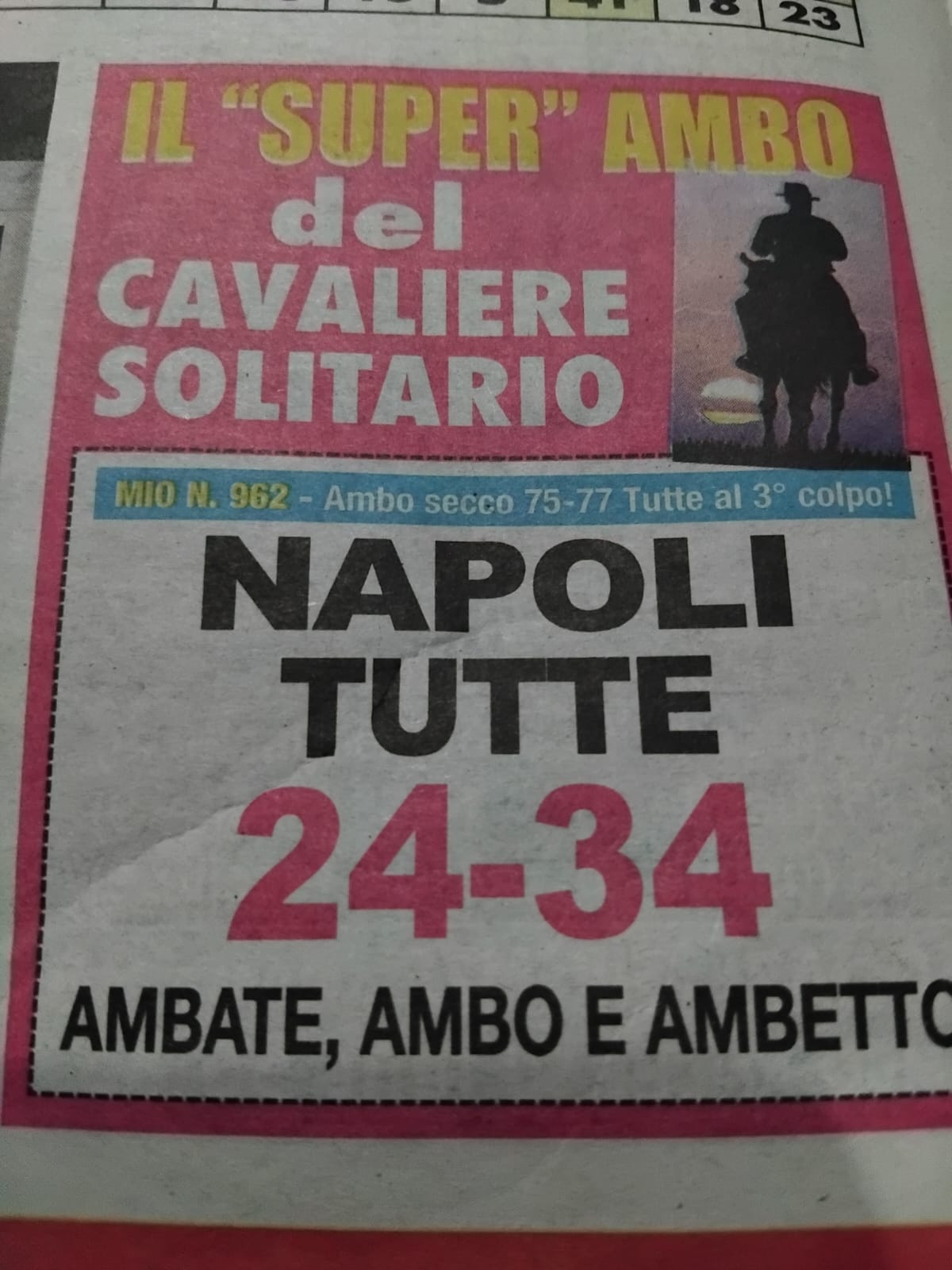 Ancora festa grande con il Cavaliere Solitario su Lottomio !!! Ambo secco a colpo !!!